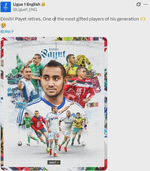官方:帕耶宣布退役,法甲和法国国家队官方社交媒体均已发文致敬。